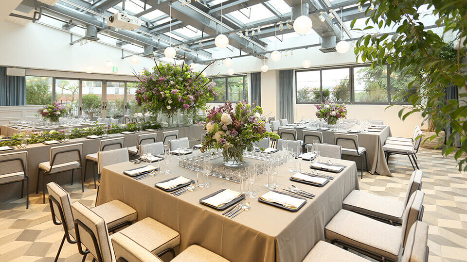 原宿の裏通りにひっそりと佇む、都心とは思えないほど広大な敷地を持つカフェです。高い天井と開放感のある吹き抜け、そして美しい「中庭」があるのが特徴。アパレルの展示会やコスメのPRイベントなど、屋内外を広く使ったラグジュアリーな催しに最適です。